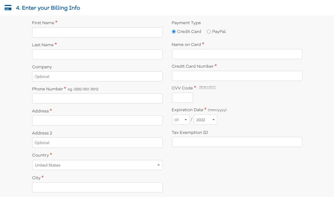 Add your billing info along with the payment method you want to go with.