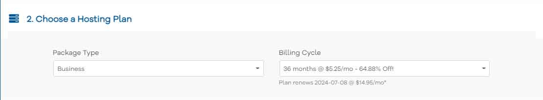 Choose the hosting plan and the billing cycle that you are comfortable with.